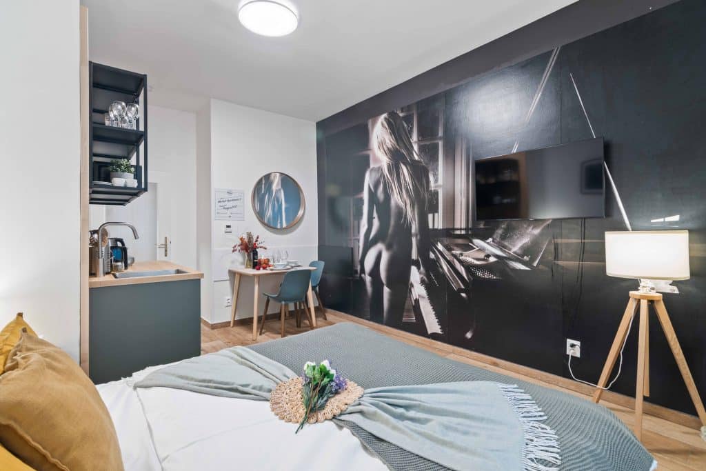 Přijďte si užít náš moderní a designově zařízený milenecký azyl v Praze na Královských Vinohradech. Absolutní diskrétnost, soukromí, pohoda, čistota, příjemné prostředí v luxusně zařízeném apartmánu jsou pro nás samozřejmostí. Pokud hledáte pro sebe a svou mileneckou polovičku hnízdečko lásky, jste tu správně 🙂